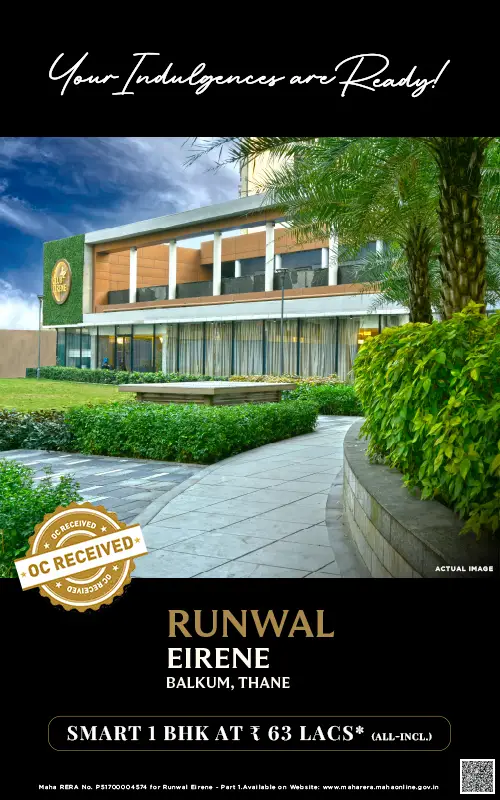 Nestled in one of Thane’s most serene locations, Runwal Eirene brings the best of comfort & elevated lifestyle. While keeping you close to nature in the comfort of Signature Garden Residences, this project is surrounded by some of the best entertainment venues, retail stores, educational and medical facilities, prime business houses, and more. Also, it comes with excellent connectivity to the Western and Central suburbs of Mumbai.